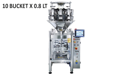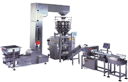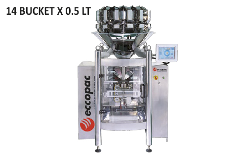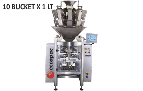 Esta máquina está provista de Un sistema dosificador multi cabezal de productos granos, y productos irregulares como Snacks, Marca ECCOPAC de última generación, conformado por Balanzas accionadas por motores paso a paso de origen italiano y celdas de Carga para el pesaje de origen Alemán.